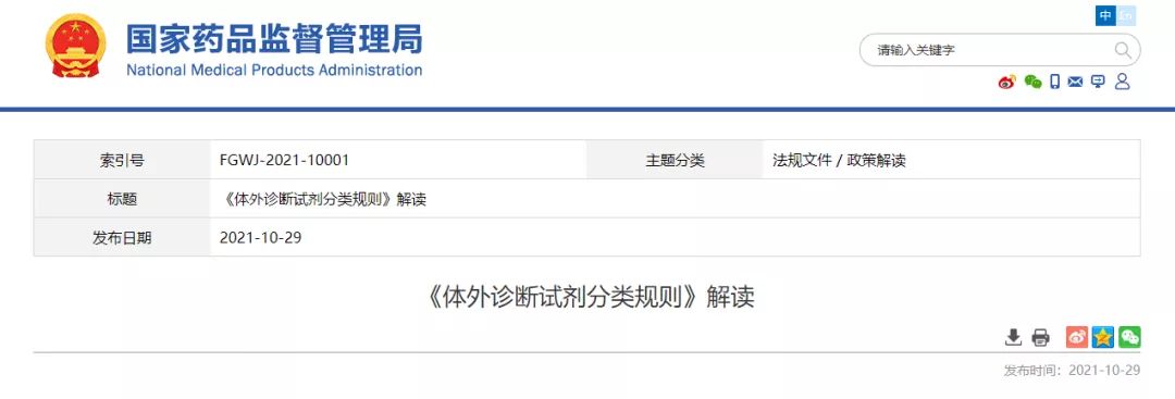 第八條 體外診斷試劑分類(lèi)目錄由國(guó)家藥品監(jiān)督管理局制定并發(fā)布。國(guó)家藥品監(jiān)督管理局根據(jù)體外診斷試劑生產(chǎn)、經(jīng)營(yíng)、使用情況,及時(shí)對(duì)體外診斷試劑的風(fēng)險(xiǎn)變化進(jìn)行分析、評(píng)價(jià),對(duì)體外診斷試劑分類(lèi)目錄進(jìn)行調(diào)整。