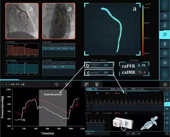 FlashAngio caFFR System(caFFR),是一個冠狀動脈血流儲備分?jǐn)?shù)(FFR)評估系統(tǒng),基于冠狀動脈血管造影的影像計算冠狀動脈造影血流儲備分?jǐn)?shù),在不使用壓力導(dǎo)絲的情況下,實現(xiàn)對冠脈血管狹窄病變出FFR值的評估,基于常規(guī)的造影圖像進(jìn)行血管三維重建,通過專用壓力傳感器實時采集主動脈壓力,利用優(yōu)化計算機流體力學(xué)算法實時計算FFR值,可用于術(shù)前診斷、術(shù)中指導(dǎo)和術(shù)后評估。