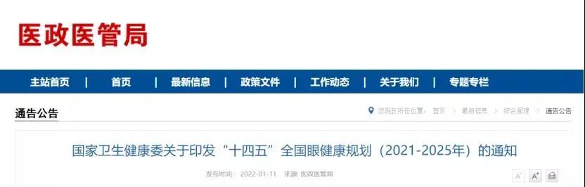 《“十四五”全國眼健康規(guī)劃(2021-2025年)》