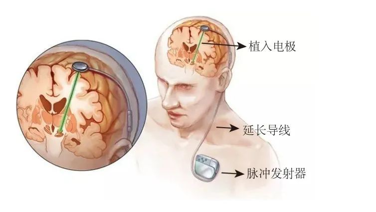在發(fā)病初期,藥物治療是首選,后期隨著疾病進(jìn)展,藥物逐漸失去療效,就可以使用目前被廣泛認(rèn)可的首選外科療法——腦深部電刺激療法(Deep Brain Stimulation,DBS),也稱腦起搏器,它是一種有源植入醫(yī)療器械,于20世紀(jì)70年代出現(xiàn),是通過立體定向技術(shù),將電極植入腦內(nèi)特定核團,連接植入胸部的脈沖發(fā)生器,發(fā)放電脈沖對特定核團神經(jīng)元的功能進(jìn)行調(diào)控,以改善癥狀,是目前國際上最先進(jìn)的神經(jīng)調(diào)控技術(shù),用于藥物不能有效控制運動障礙癥狀的帕金森患者。