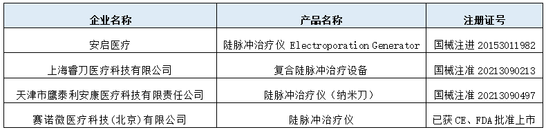 目前國(guó)內(nèi)已獲批的陡脈沖產(chǎn)品(來(lái)源:NMPA)