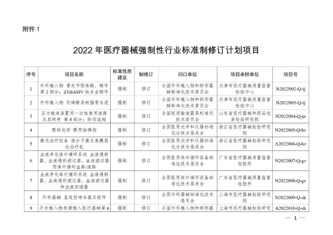 為貫徹國(guó)務(wù)院辦公廳《關(guān)于全面加強(qiáng)藥品監(jiān)管能力建設(shè)的實(shí)施意見(jiàn)》,落實(shí)《“十四五”國(guó)家藥品安全及促進(jìn)高質(zhì)量發(fā)展規(guī)劃》有關(guān)要求,按照國(guó)家藥監(jiān)局醫(yī)療器械行業(yè)標(biāo)準(zhǔn)制修訂工作部署,現(xiàn)將2022年醫(yī)療器械行業(yè)標(biāo)準(zhǔn)制修訂計(jì)劃項(xiàng)目印發(fā)給你們,有關(guān)要求通知如下: