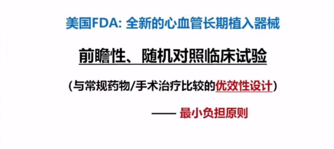 李衛(wèi)教授講到,美國(guó)FDA針對(duì)全新的心血管長(zhǎng)期植入器械,也要做前瞻性、隨機(jī)對(duì)照臨床試驗(yàn)。創(chuàng)新產(chǎn)品無(wú)同類(lèi)產(chǎn)品可對(duì)照,可與常規(guī)的藥物/手術(shù)治療比較的優(yōu)效性設(shè)計(jì),也就是最小負(fù)擔(dān)原則。