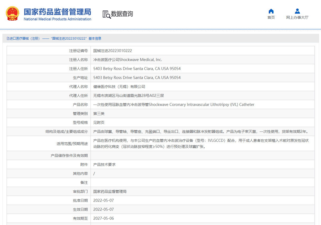 創(chuàng)新性技術正處于起步發(fā)展階段,美國ShockwaveMedical是全球第一家也是唯一一家推出沖擊波球囊的公司,目前尚無同類產(chǎn)品在我國獲準注冊,產(chǎn)品已在國外投入臨床使用,并于2022年5月24日經(jīng)NMPA批準上市。