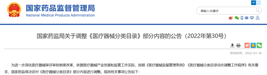 國家藥品監(jiān)督管理局發(fā)布關(guān)于調(diào)整《醫(yī)療器械分類目錄》部分內(nèi)容的公告,明確水光針(注射用透明質(zhì)酸鈉溶液)按照三類器械監(jiān)管。