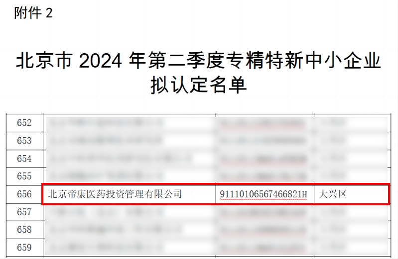 2024年8月8日,北京市經(jīng)濟(jì)和信息化局發(fā)布通知公告《關(guān)于對北京市2024年度第二季度專精特新中小企業(yè)名單進(jìn)行公示的通知》,奧泰康北京CDMO中心(北京帝康醫(yī)藥投資管理有限公司)被成功認(rèn)定為北京市“專精特新”中小企業(yè),這也是繼國家高新技術(shù)企業(yè)、中關(guān)村高新技術(shù)企業(yè)、北京市創(chuàng)新型中小企業(yè)之后獲得的又一項(xiàng)重要資質(zhì)。