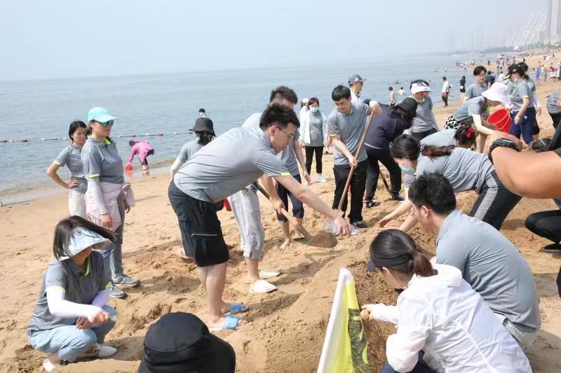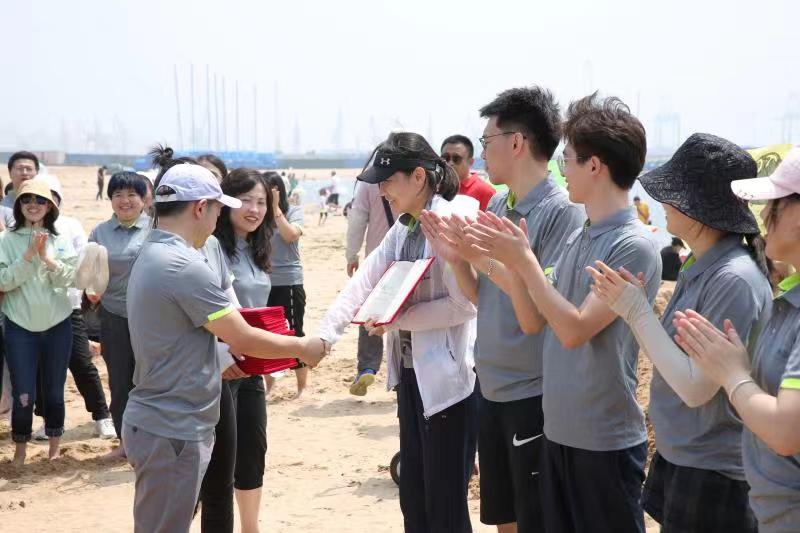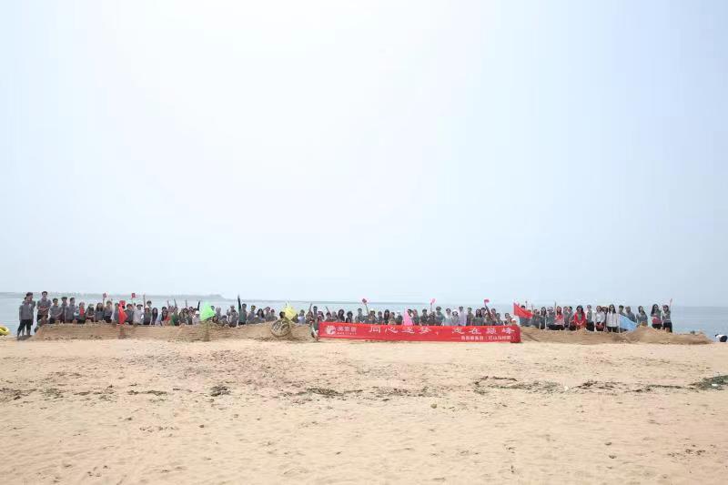 海邊沙灘,全體奧泰康人共同構(gòu)筑了一座長40余米、高1米的沙雕長城,每組隊員分工明確—鏟沙、運水、堆砌,聚沙成塔,經(jīng)過兩小時的共同搭建,眾志成城,一座巍峨壯闊的沙雕長城矗立在沙灘上。