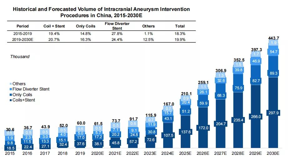 相較于歐美人群,我國顱內(nèi)動脈瘤普遍呈現(xiàn)“瘤體小、載瘤動脈管徑細”的特點,但目前市場上的的動脈瘤栓塞彈簧圈仍以進口產(chǎn)品為主,國產(chǎn)替代率尚不足10%,亟需一款適合國人的超柔軟彈簧圈。通橋鳳彈簧圈的上市,填補了這一市場空白。通橋鳳彈簧圈圈體更柔軟,推送系統(tǒng)更柔順,能更好地順應(yīng)瘤體形態(tài),提高手術(shù)安全性和栓塞效果。 同時,通橋鳳彈簧圈采用了機械解脫的結(jié)構(gòu),與電解脫和水解脫方式相比,解脫過程簡單快速、安全可靠,術(shù)者只需“一折一拉”,即刻解脫,平均解脫時間小于1秒。 在型號方面,通橋鳳彈簧圈系統(tǒng)擁有十分齊全的規(guī)格型號,包括6個1mm型號,可以覆蓋多數(shù)復(fù)雜病變,為小動脈瘤栓塞提供更多選擇,為患者和醫(yī)生提供全方位栓塞治療方案。 隨著中國人口老齡化的加劇及國內(nèi)神經(jīng)介入技術(shù)的快速發(fā)展,我國的神經(jīng)介入醫(yī)療器械市場快速增長。《中國腦卒中防治報告(2020)》指出,我國顱內(nèi)動脈瘤的檢出率高達7%,且呈現(xiàn)逐年上升趨勢。根據(jù)弗若斯特沙利文分析,中國顱內(nèi)動脈瘤介入手術(shù)量由2018年的5.2萬臺到2021年7.37萬臺,到2030年將進一步增加到44.4萬臺,市場空間巨大。